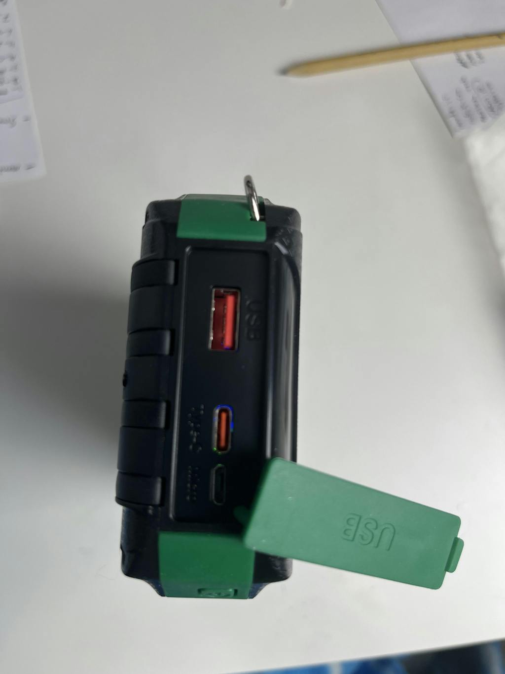 Entrée USB-C + charge d'entretien par panneau solaire |
