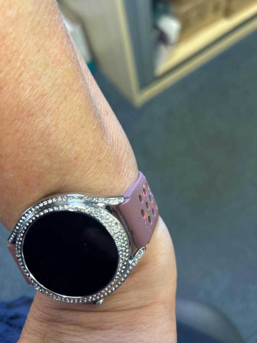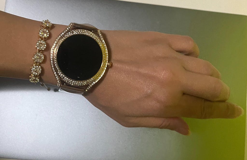 Ornée de 150 zircones cubiques autour d'une lunette en métal poli, la V66, avec sa forme élégante, s'intègre parfaitement aux looks décontractés comme formels. Accessoire technologique, elle fait également office de bijou élégant.